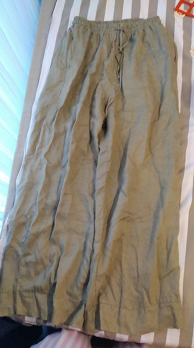 Geniş kesim, keten kumaştan bej renkte, drapeli ve midi boy pantolon. Rahat ve sade günlük kullanıma uygun. yemi sezon