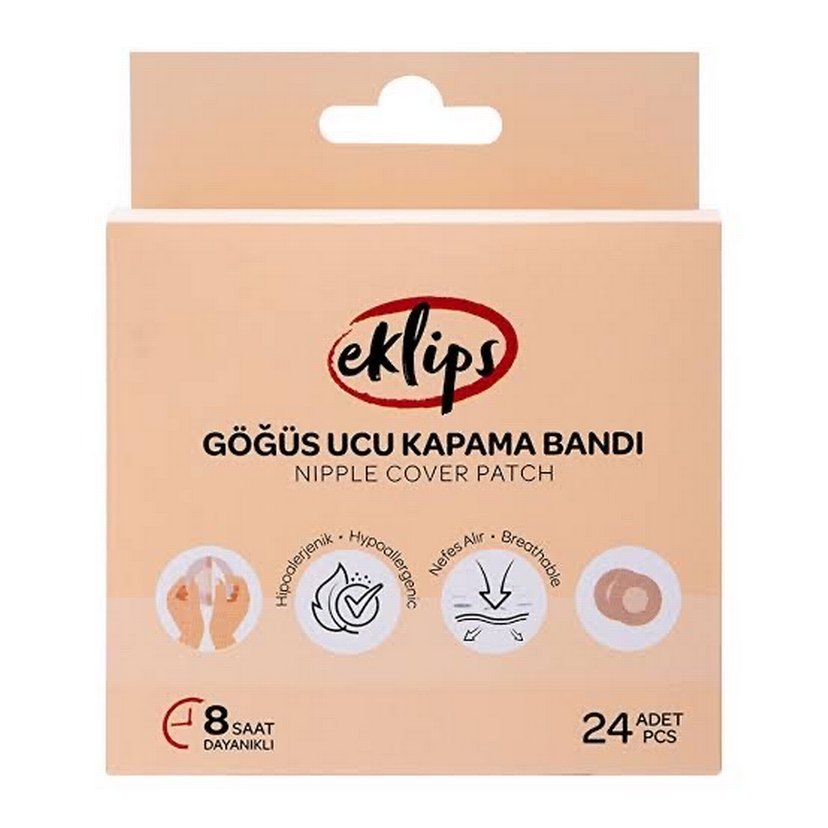 Bej renkli, nefes alabilen ve hipoalerjenik göğüs ucu kapama bandı 8 saat dayanıklıdır. Pakette 24 adet bulunur.