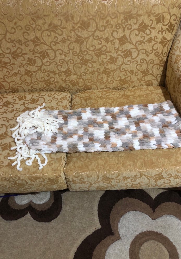 Bej ve gri tonlarında, örgü kumaştan yapılmış atkı el yapımı şapkasında var sayfamda