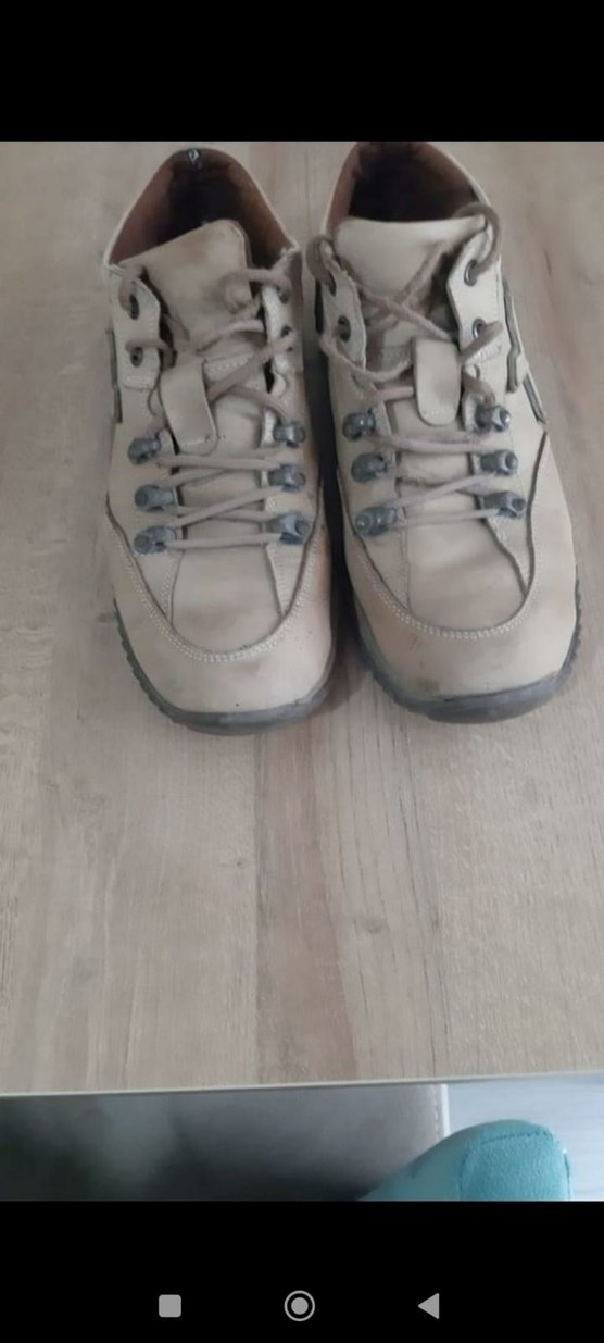 Bej ve gri renklerde, kauçuk tabanlı, bağcıklı erkek outdoor ayakkabısı. Minimalist ve günlük sokak stili için uygundur. Ürün az kullanıldı.sağlam kışlık herhangi bir sorunu deformesi yoktur.gayet kullanışlı rahat bir ayakkabı .#erkek#ayakkabı#bej#