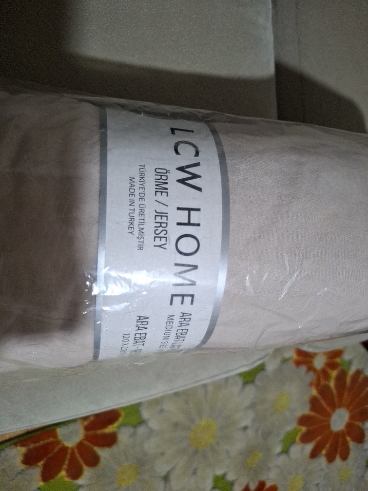 Bej ve gri tonlarında baskılı desenli, CW HOME markasına ait yumuşak jersey kumaştan nevresim takımı.