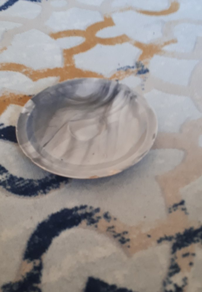 Bej ve gri renkte, batik desenli bohem tarzda servis tabağıdır. ️