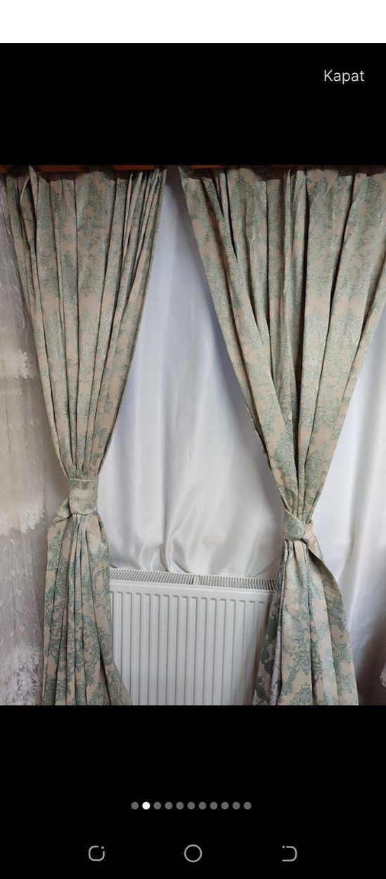 Bej zemin üzerine gri batik desenli klasik tarzda perdeler, odanıza yumuşak ve zarif bir hava katar hiç kullanılmadı özel dikim tek camlık çitf kanat