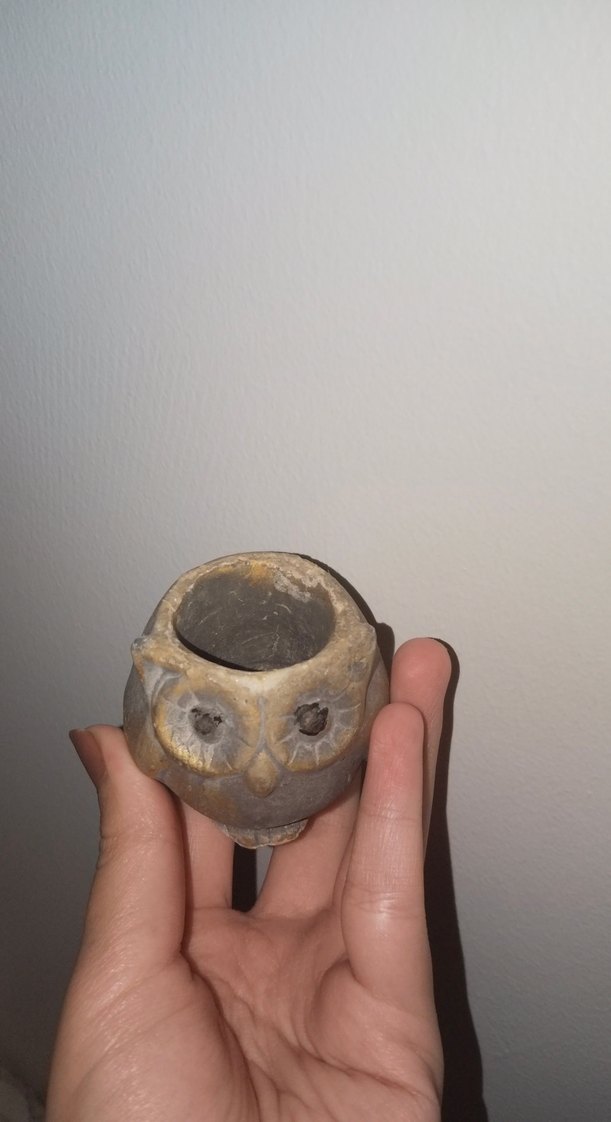 Bej ve gri renklerde, içi boş baykuş figürin. Detaylı baykuş yüzü ve rustik görünüme sahip. Masa üstüne evinizin bir köşesine koyabilirsiniz.