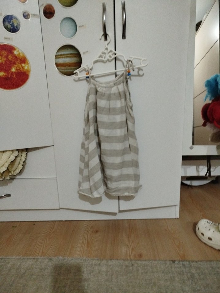 İnce askılı, bej ve gri çizgili, yumuşak kumaştan yapılmış çocuk elbisesi. Sıcak havalar için uygundur pamuk 2 3 yaş. Bej krem renk hediyeli urundur diğer ürünlerime de bakınız karlı cıkınız