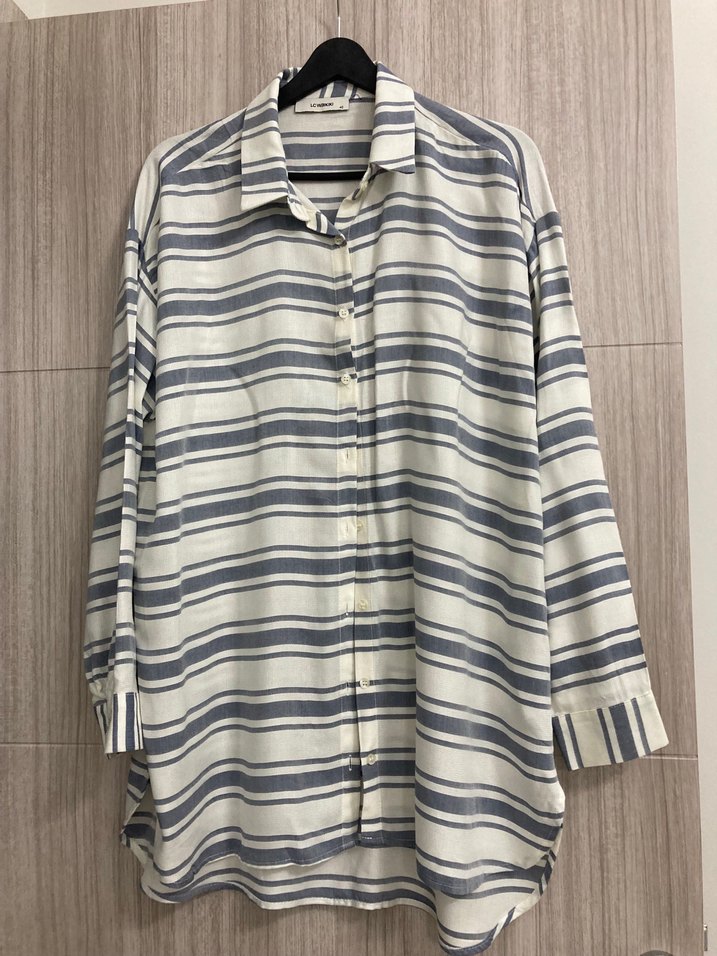Bej Gri Çizgili Uzun Kollu Gömlek