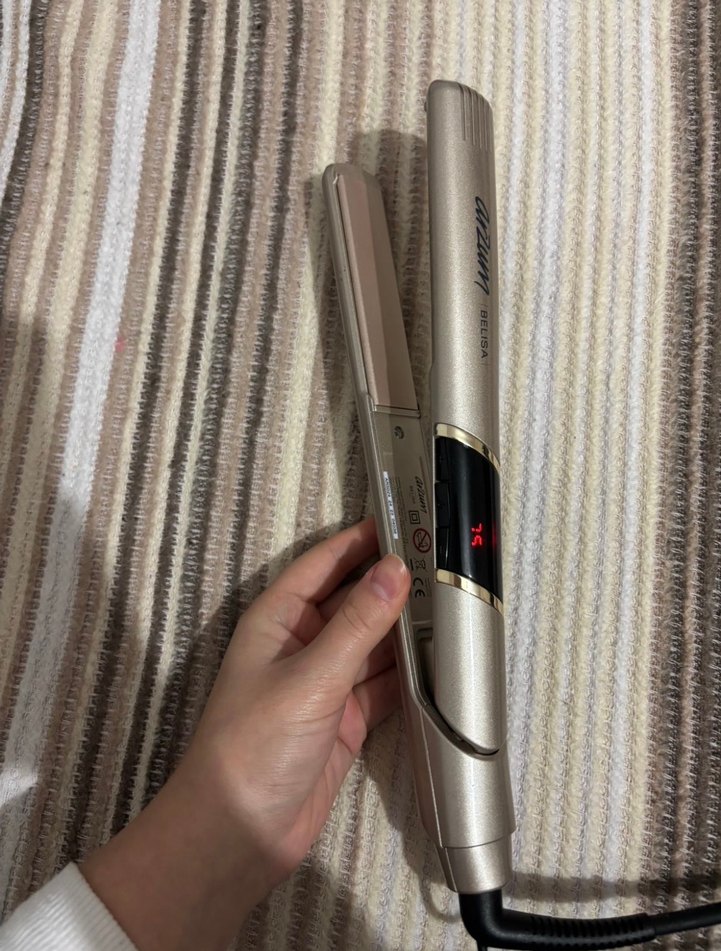 Bej ve gri renklerde, dijital ekranlı saç düzleştirici. Hassas ısı ayarı ve rahat tutuş sağlar. ♀️ 30 dk süre içinde kullanabilirsiniz istediğiniz dereceyi ayarlayabilirsiniz