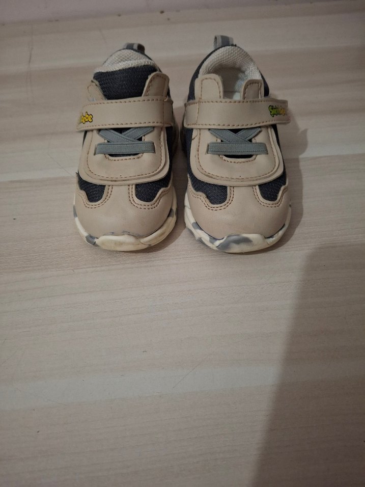 Bej renkli, erkek çocuk spor ayakkabısı, cırt cırtlı ve kauçuk tabanlı, sadece bir kere giyildi
