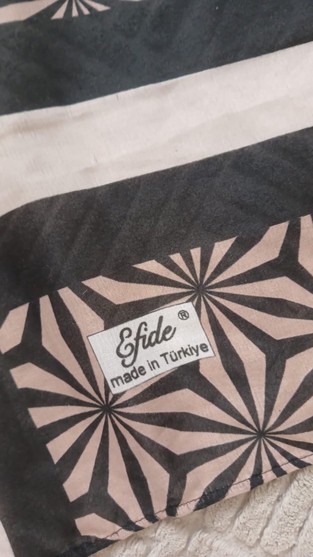 Bej ve gri renklerde, fırfırlı detaylara sahip kadın şalı. Bohem ve rahat tarzı bir araya getirir. Türkiye'de Efide tarafından üretilmiştir. 2 adet vardır