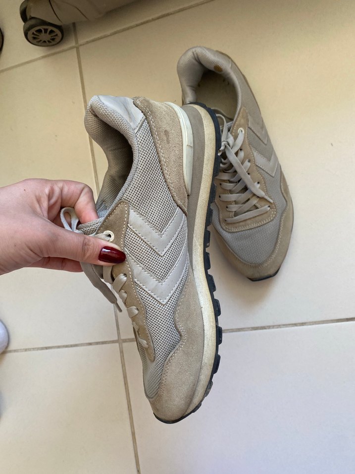 Günlük kullanım için çok rahat bit ayakkabı . Bayadır dolapta duruyordu Makinede yıkanırsa kiri geçer . Herhangi bir defosu yok