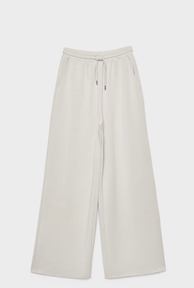 Yumuşak pamuk kumaştan yapılmış, bej gri renkli, bol kesim kadın midi pantolon. Bel kısmında bağcıklı, rahat ve trend bir görünüm sağlar. Günlük kullanım için uygundur.