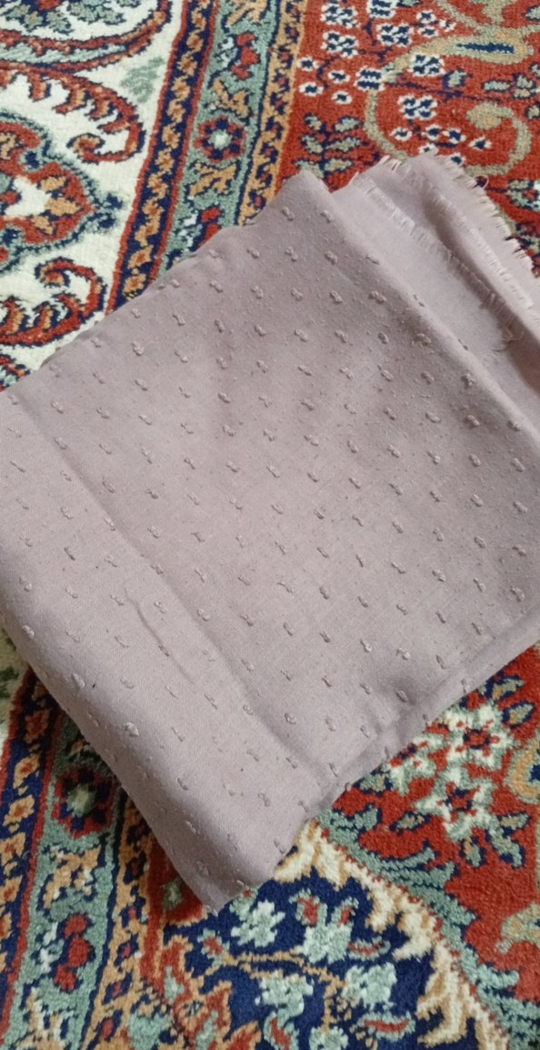 Bej ve gri renklerde, fırfır detaylı kadın fular. Bohem ve retro tarzı yansıtan, rahat bir dokusu var.