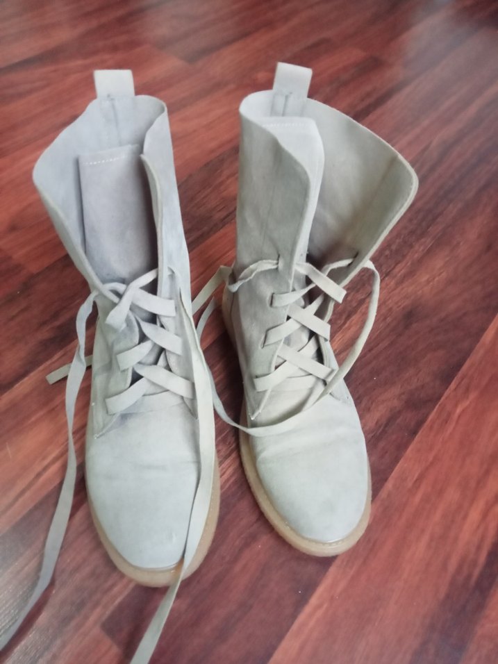 Bej ve gri tonlarda, süet malzemeden yapılmış kadın dolgu topuk botları. Minimalist ve normcore tarzıyla günlük kullanıma uygun, zahmetsiz şıklık sunar.