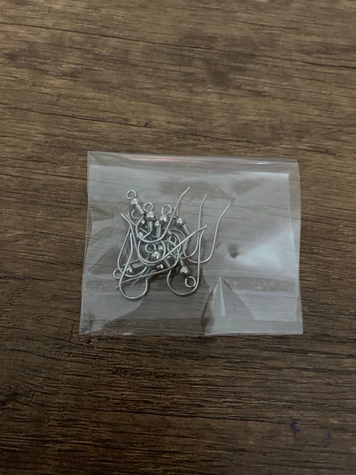 Şeffaf poşette bej ve gri renkli küçük küpen aparatı kancaları. Paket 6 çif
