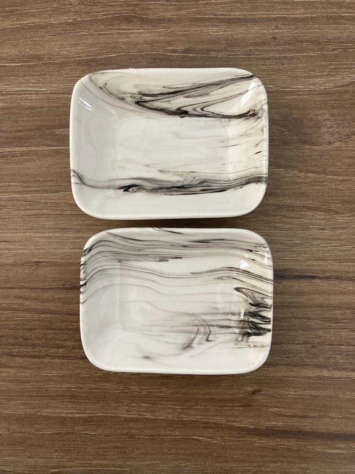 Sadece 1 tanesinin iç kısmında çizik var ve arkalarında biraz defo var. Fotoğrafta belirttim. Onun dışında hiçbir sorun yok. #evveyaşam #mutfakaraçları #mutfakgereçleri #kahvaltıtakımları #sunumluk #çerezlik #günlük #seramik #porselen #beyaz #yeni #defosuz #2kişilik #tabak #kase #kare #tabak #kayıktabak İki adet bej renginde, gri mermer desenli dikdörtgen tabaktan oluşur. Pürüzsüz yüzeyiyle sofranıza şıklık katar. ️