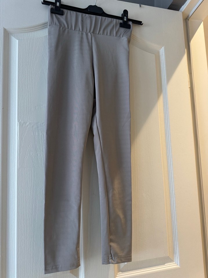 Düz bej-gri renkte, sentetik kumaştan yapılmış, midi boy ve vücuda oturan kadın taytı. Ofis için uygun, sade ve normcore tarzda, zahmetsiz şıklık sunar. ♀️