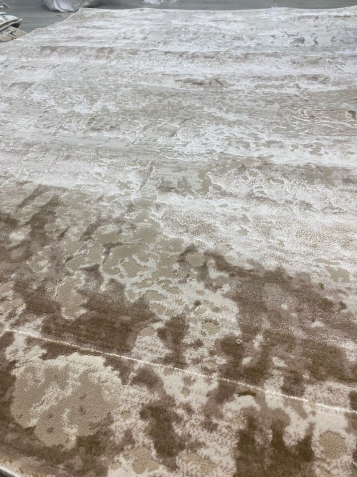 Bu modern halı, bej ve gri tonların yumuşak karışımı ile sade, desensiz bir tasarıma sahiptir. Modern mekanlar için nötr ve şık bir görünüm sunar.