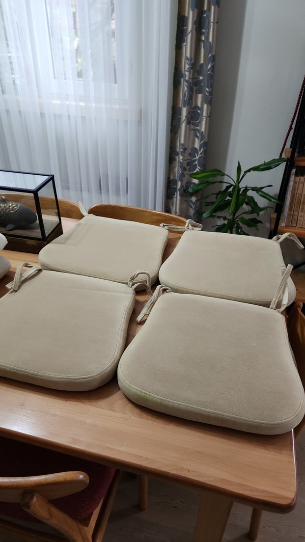 Kullanıma bağlı yıpranmalar olabilir ama temiz bir üründür temiz yıkanmış ürünlerdir süet tarzı bir kumaşa sahiptir ürün ölçüsü oturma yeri arka taraf 37 santim ön taraf 43 santim derinlik 41 santimdir cırt cırtlı bağlama yerleri mevcuttur yıkanmış kaldırılmıştır Alana hayırlı olsun.Bağcıklı, desen içermeyen bej ve gri renklerde, çağdaş tarzda dörtlü sandalye minder seti. ️