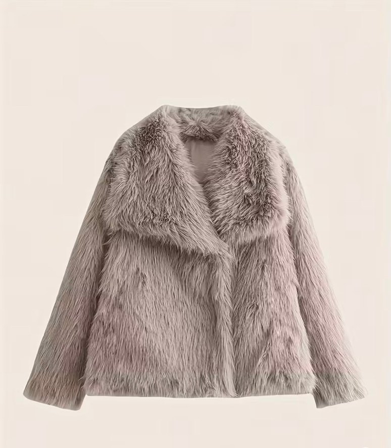 Bu kadın peluş mont, bej-gri renkte, uzun kollu ve notched yaka detaylıdır. Rahat kesimi ve yumuşak dokusuyla günlük kullanıma uygundur. Sadece fotoğraftaki gün giydim. Çünkü bedeni çok büyük 42 değil 44 gibi hatta 46 bedene bile olabilir.