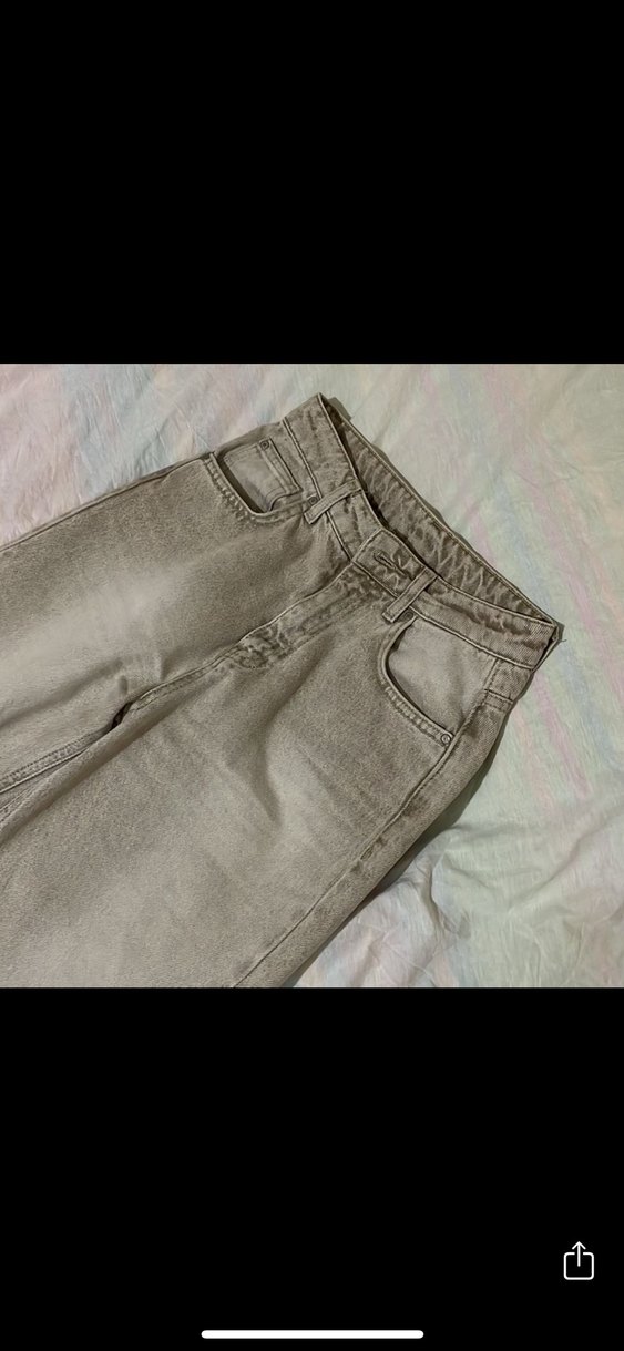 Bej ve gri tonlarında, rahat kesim midi uzunlukta denim kot pantolon. Günlük kullanım için uygun, sokak stiline uygun şık ve rahat tasarım.