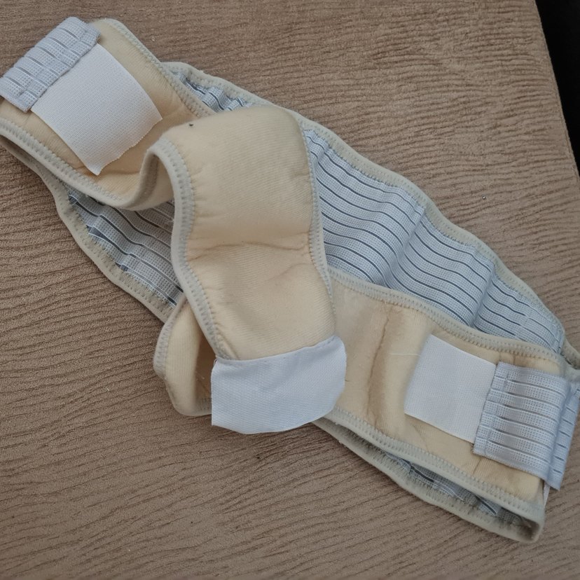 Bej ve gri renkte, normal midi boyda, içi yumuşak dolgulu, ayarlanabilir bantlı, vücuda oturan hamile bel/göbek destek korsesi. İkiz hamileliğimde büyüyen göbeğimi sarkmasıni önleyerek bel ağrılarını önleyen ve kan dolaşımını düzenleyen üründür. Dokusu ve lastikleri sağlamdır, ılık suda sabun ile elde yıkanıp düz serilerek kurutuldu, hiçbir deformasyon yoktur. Cırtbatların her iki yüzeyi de sorunsuzdur. Türkmedical Hamile bel destek korsesi olan bu ürün, internette 351-399 lira bandındadır.