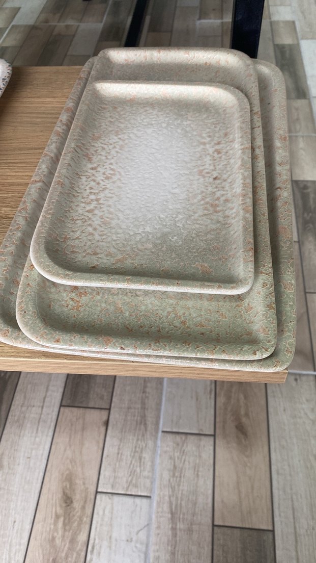 Bej ve gri renklerde, dokulu yüzeye sahip dikdörtgen saklama tepsileri seti, yiyecek düzenleme ve servis için uygundur. ️