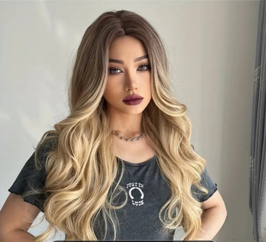Bej Gri Sentetik Kumaş Uzun Dalgalı Peruk