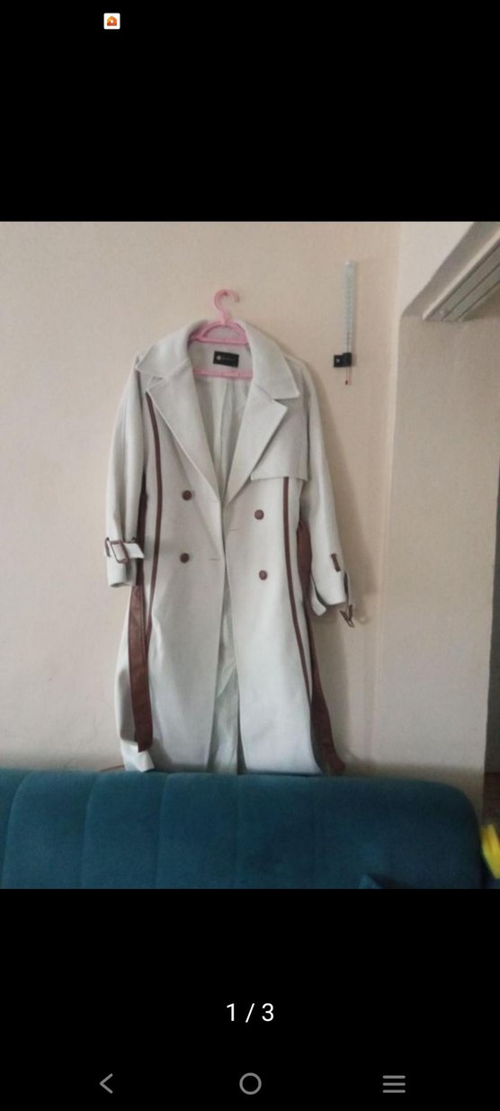 Bej ve gri renklerde, süet kumaştan uzun trençkot. Yaka kısmı kırmalı, düğmeli ve askılı kollu, günlük kullanıma uygun regular fit.80 kg kadar uygun
