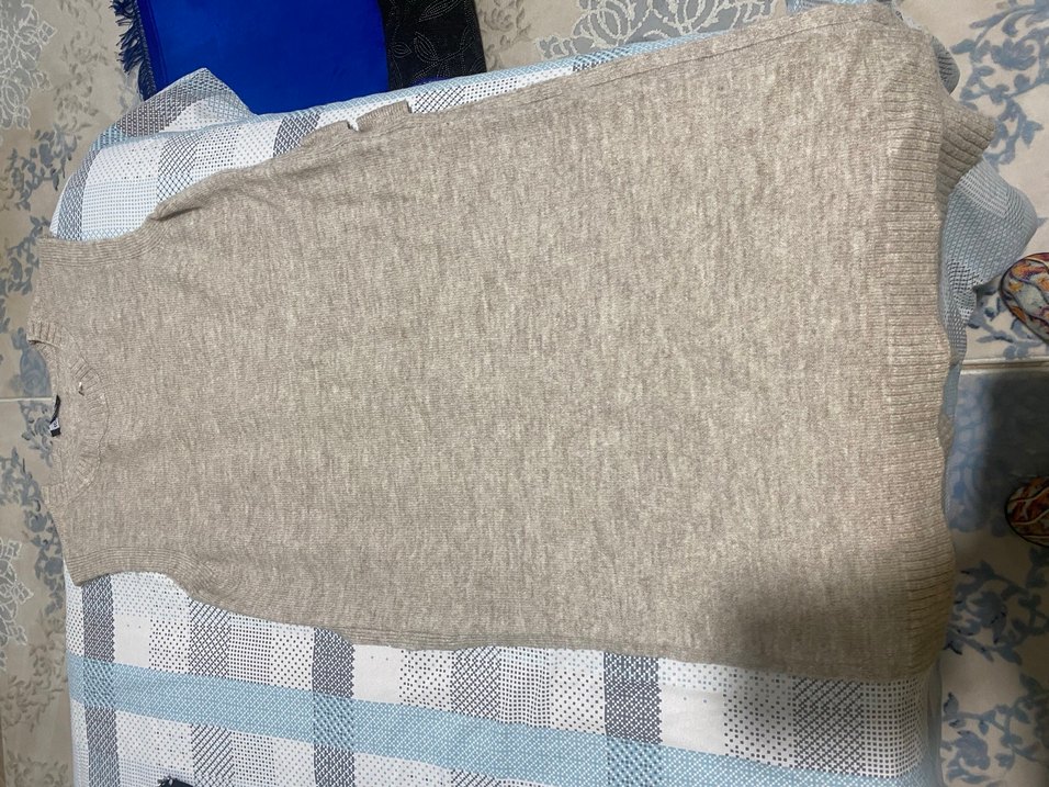 Bej ve gri tonlarında, yumuşak ve düz dokulu bir süveter sıcaklık ve konfor sağlar. ️
