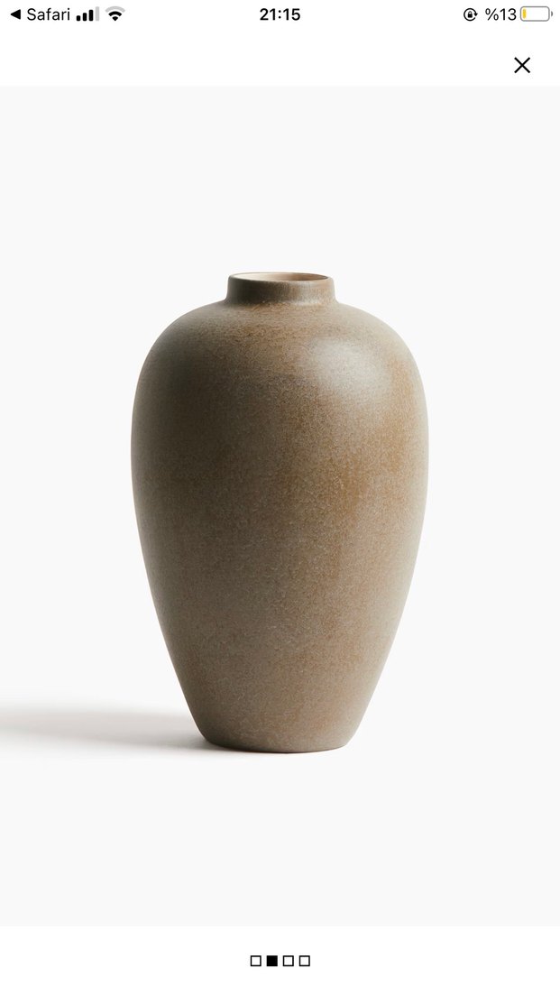 Bej ve gri tonlarında, yumuşak ve yuvarlak şekilli seramik vazo. Doğal bir görünüm için sade renkler içerir. Yükseklik 30 cm.