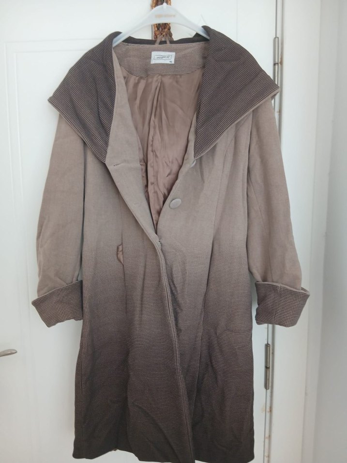 Bejden griye geçişli uzun hamile keten kaban, düğmeli ve yakalıdır. Rahat kesimi ve uzun kollarıyla günlük kullanıma uygundur. sorunu yoktur