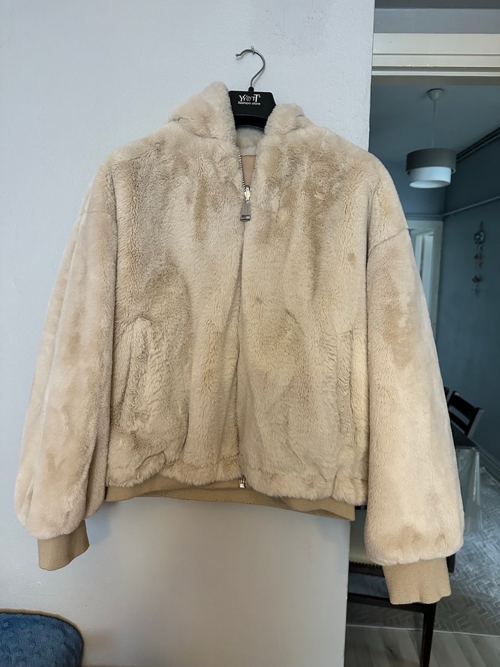 Bej renkli, kapüşonlu Guess kürk ceket. Rahat kesimi, uzun kolları ve midi boyuyla günlük kullanıma uygun, rahat bir tarz sunar. Çift taraflı kullanıma uygun orijinal Guess marka kol ve bel kısmında tüylenmeler var fotoğraflar görebilirsiniz.