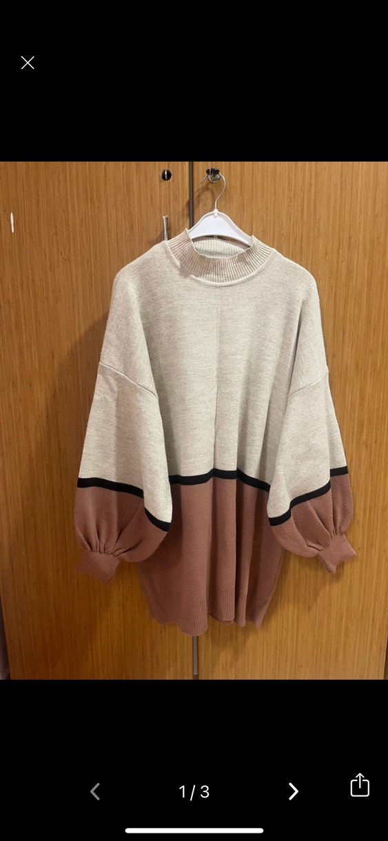 Kadınlar için salaş kesim, uzun kollu ve bisiklet yaka örgü kazak. Bej ve gül kurusu renklerde, siyah şerit detaylı, rahat ve şık günlük kullanıma uygun. Kalın kaliteli triko kumaş