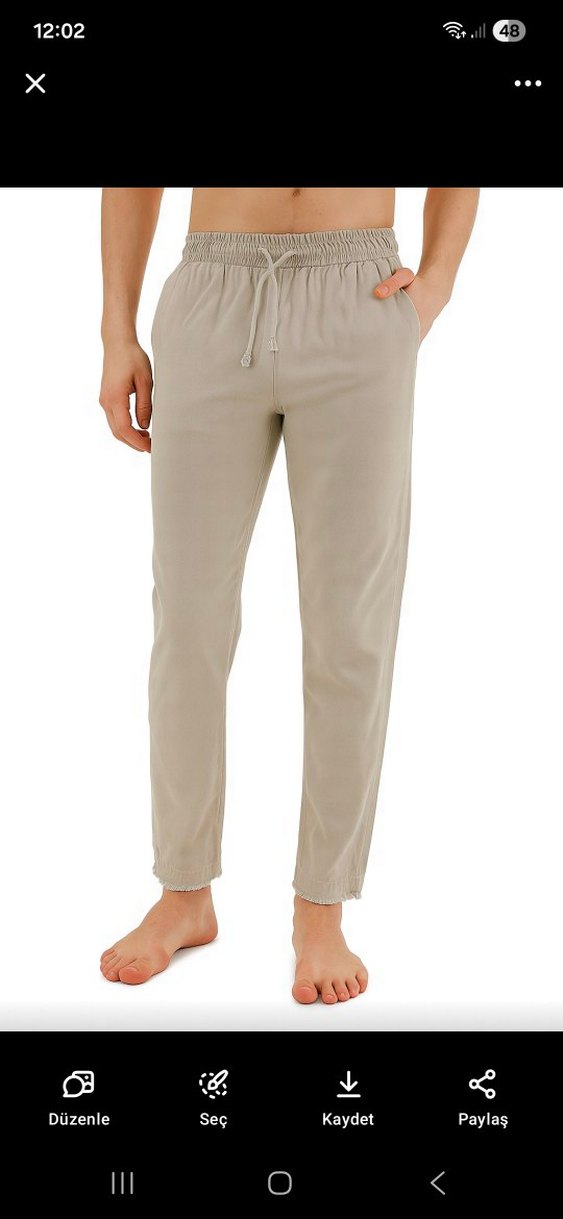 Bej renkte, düzenli kesim ve lastikli bel ile bilek kısmı detaylı, Günlük kullanıma uygun, sade stil. S_M uygun