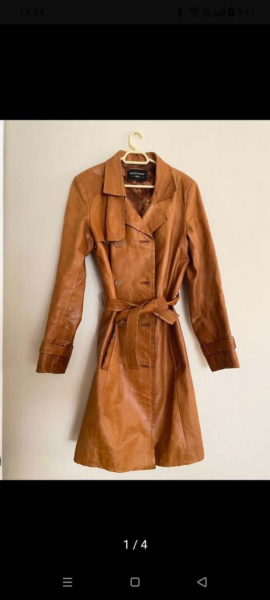 Bej hakiki Deri Kemerli Kadın Ceket