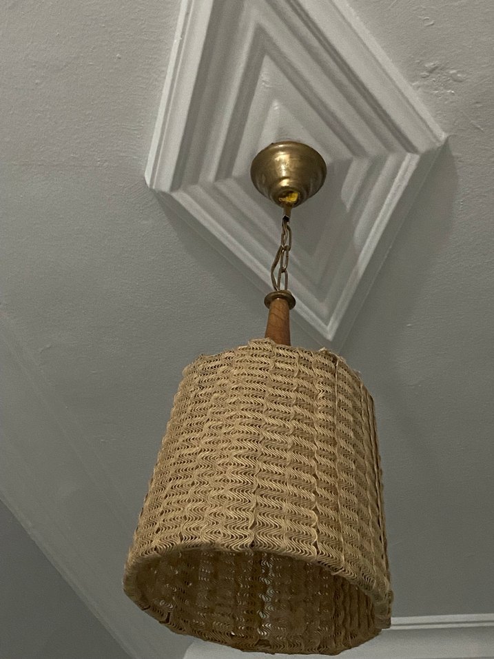 Bej renkli, hasır dokulu abajur ve ahşap detaylı asma lamba. Mekanınıza doğal bir hava katar. El emeği ürün destek olmak için sipariş oluşturunuz.