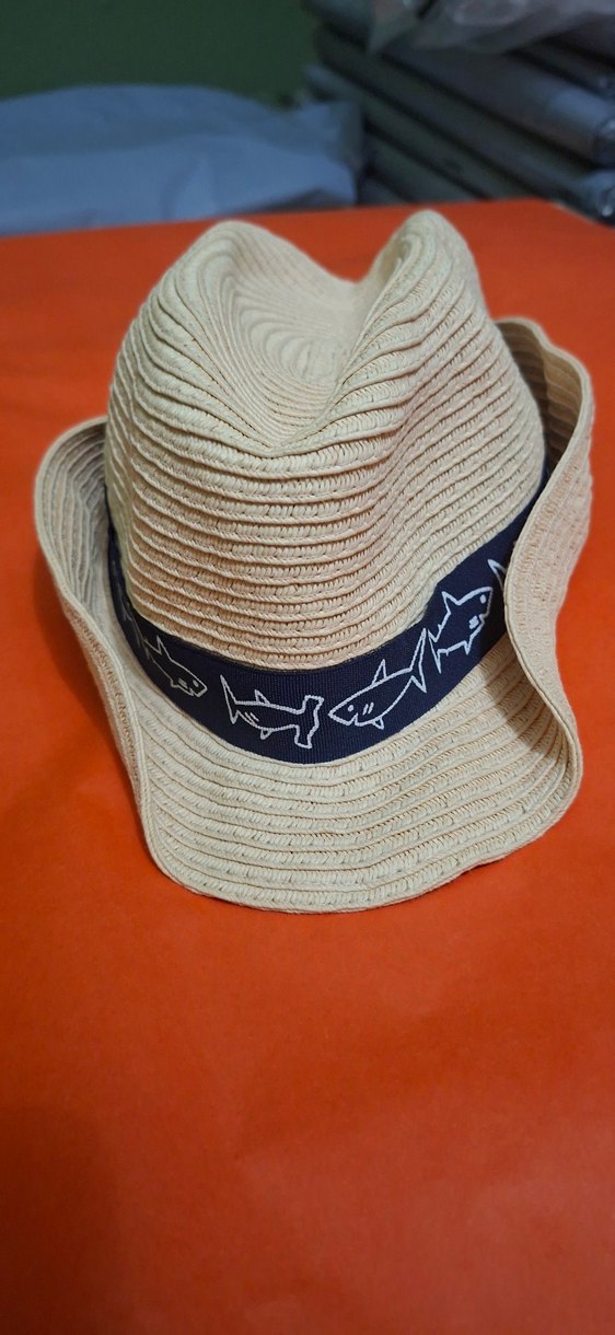 Bej renkte, sentetik kumaştan yapılmış, bohem tarzda çocuk şapkaı. Ruffle detaylı ve köpekbalığı desenli şeritli, rahat bir görünüme sahip.