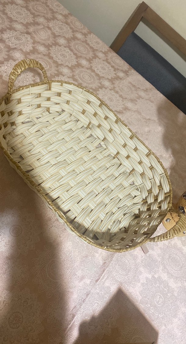 Bej Hasır Kulplu Sepet
