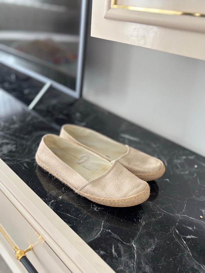 Bej hasırlı simli babet ayakkabı