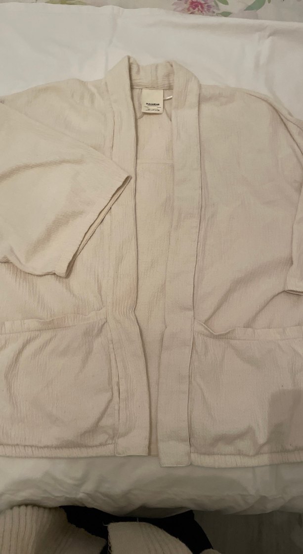Bej renkli, kısa kollu, geniş kesim midi uzunlukta, Yumuşak ve rahat bir yapıya sahiptir.