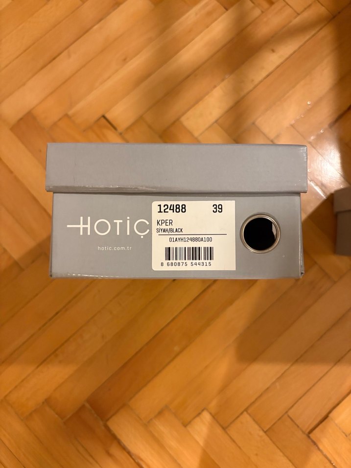 Siyah kadifemsi dokusu ile neredeyse hiç kullanılmamış HOTiC ayakkabı kutusu ile birlikte.