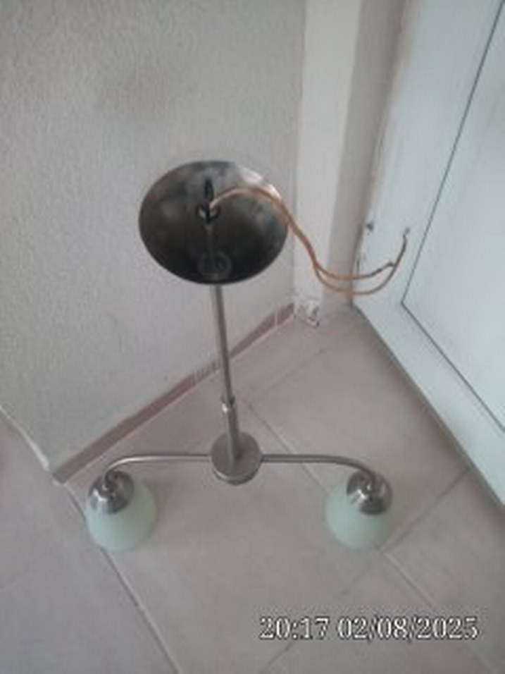 Metal gövdeli, ortadan iki kollu ve bej renkli çift lambalı abajur. Şık ve sade tasarıma sahiptir.