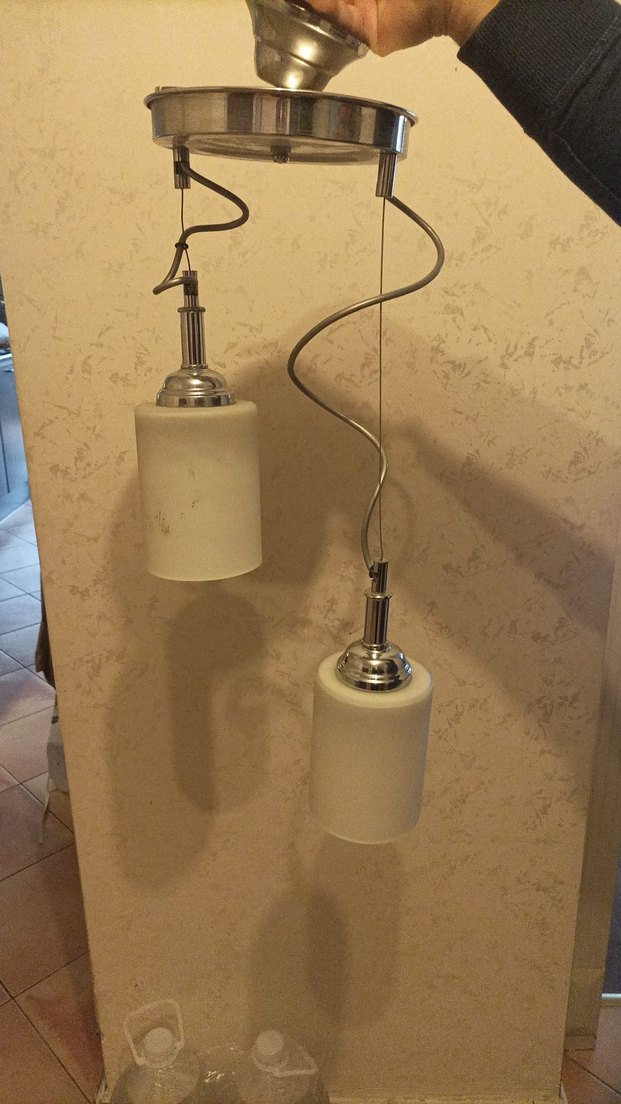 Metal aparatlar ve silindirik bej abajurlu ikili sarkıt lamba, iç mekan aydınlatması için uygundur. bauhaus dan