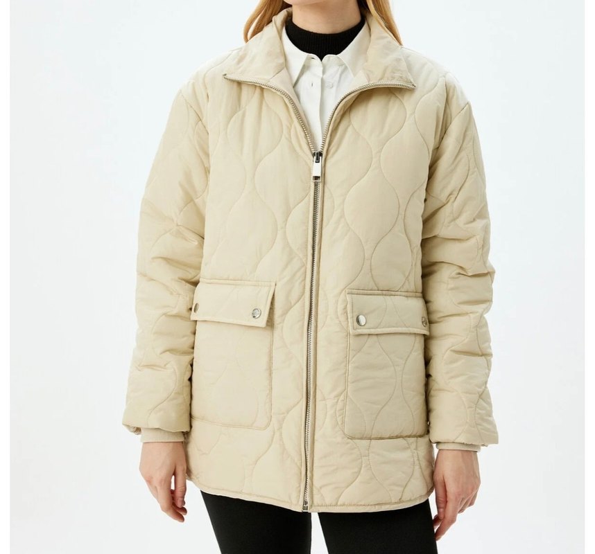 Bej ince Kadın kapitone Mont