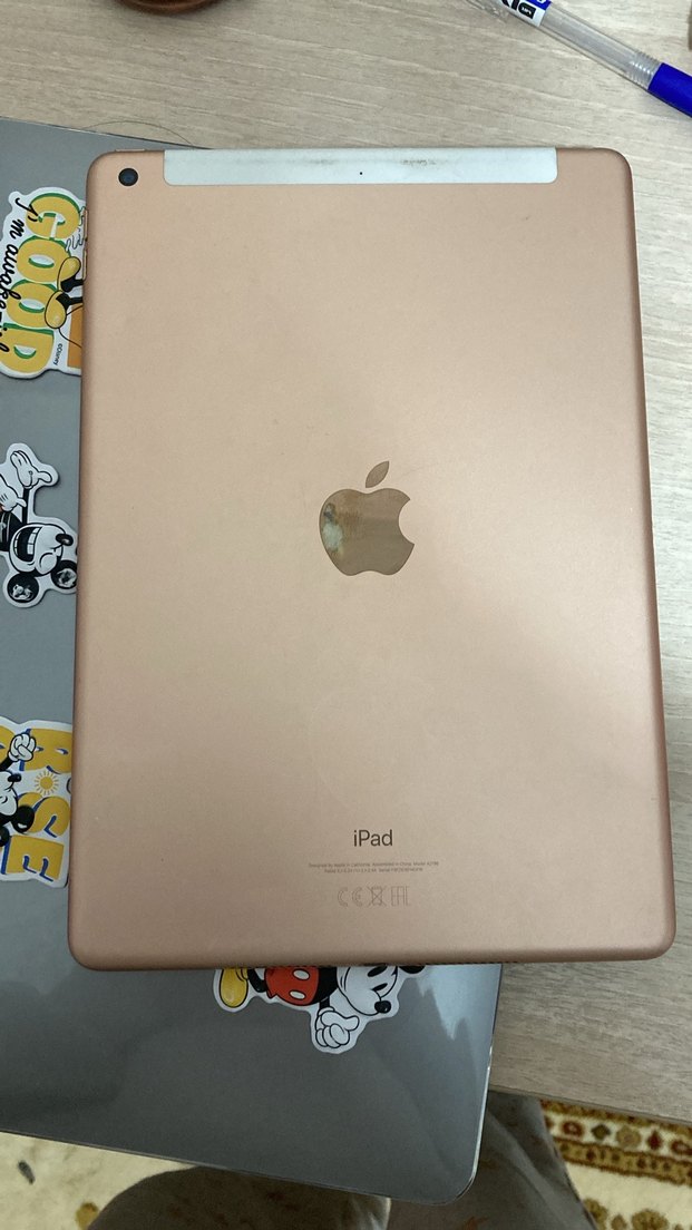 Özel ilan satın almayın. Bej renkte iPad tablet, tek kameraya sahip ve Apple logosu bulunuyor. Düz arka yüzeyiyle kullanışlıdır.