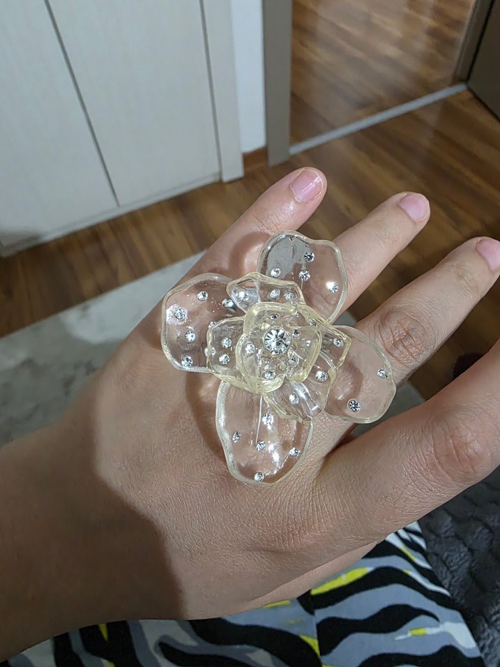 Bej Işıltılı Cam Çiçek Yüzük