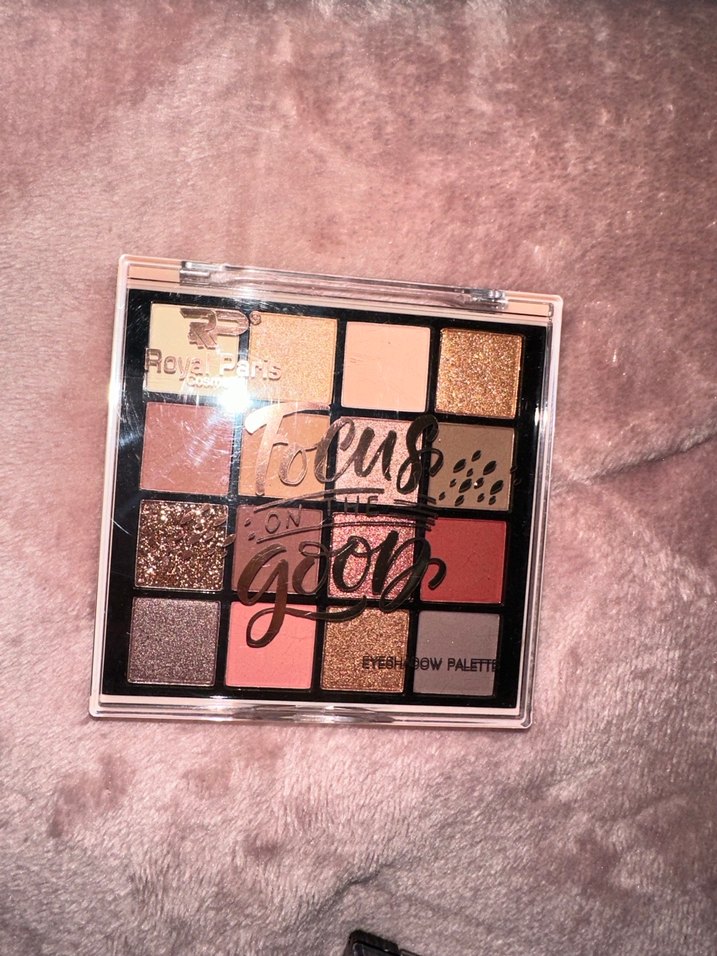 Mat ve ışıltılı bej tonları içeren, çeşitli sıcak renklerden oluşan göz farı paleti.