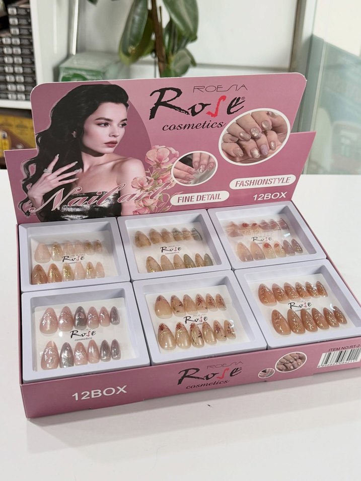 Rose taşlı desenli model takma tırnak Rose Cosmetics tarafından sunulan, ince detaylara sahip açık bej tırnak süsleri 12 kutuluk settir. Tırnaklara zarif bir parlaklık katar.