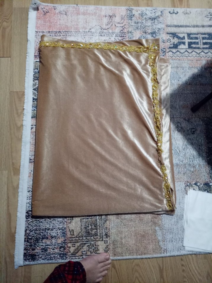 Bej İşlemeli Parlak yatak örtüsü - Görsel 4