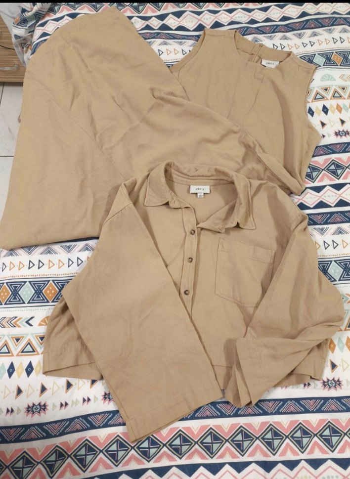 Bej jile takım L/XL cepli, rahat kesim ve uzun kollu kadın gömleği. Yaka detaylı, gündelik kullanıma uygun, zahmetsiz şıklık sunar.